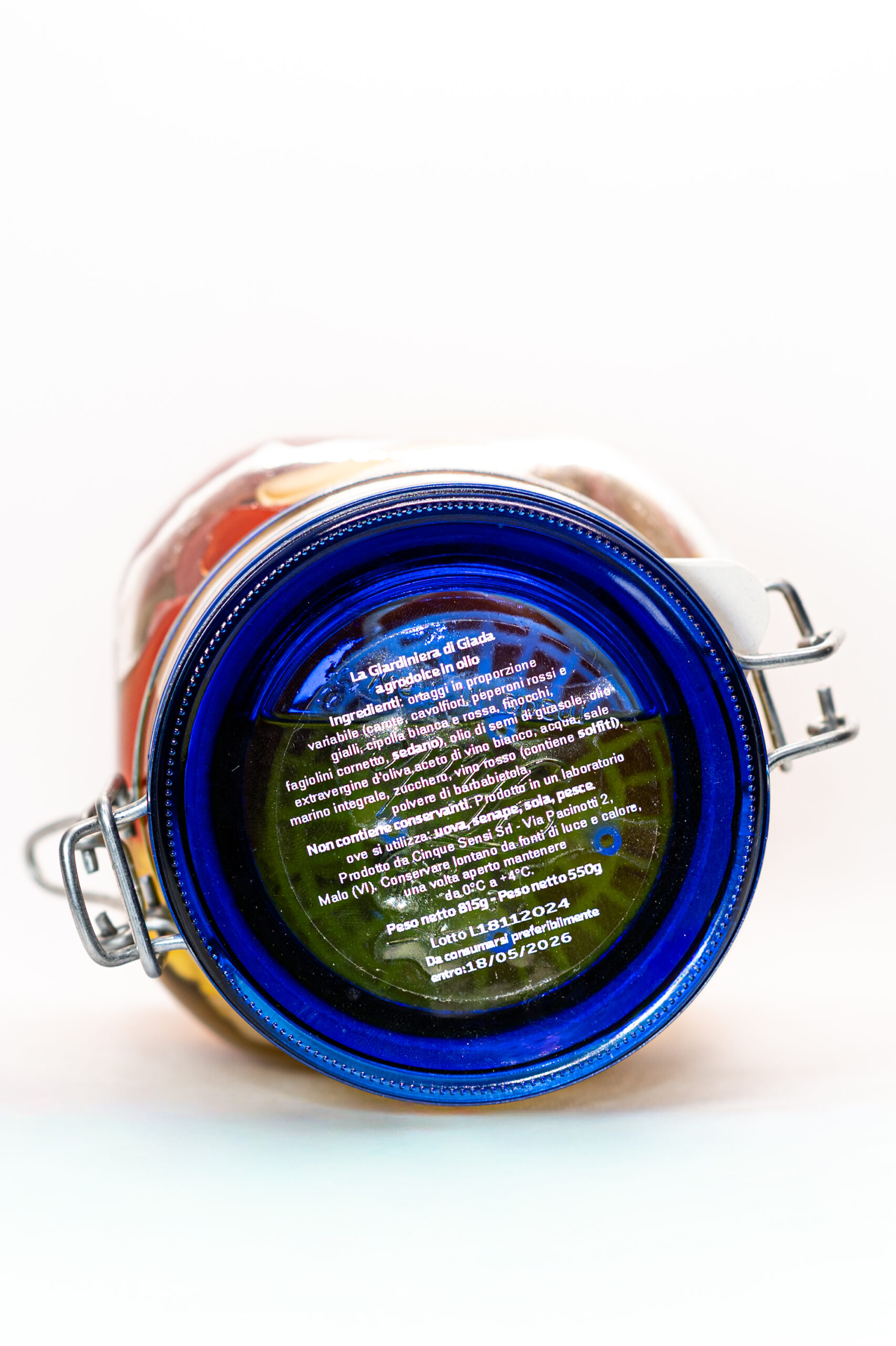La Giardiniera di Giada (Giada’s pinckled vegetables), is produced by La Giardiniera di Morgan. It is a selection of crunchy sweet and sour vegetables preserved in extra virgin olive oil and sunflower oil. Very colorful and rich, it is perfectly paired with cured meats, bluefish, tuna or salmon.